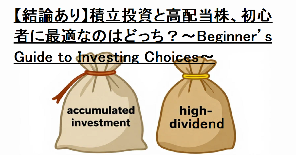 初心者の方は、まずは再現性の高い積立投資を基本とするのがおすすめです。そのうえで、投資に慣れてきたら高配当株を一部取り入れることで、バランスの良い資産形成が可能になります。最も重要なのは、自分に合った方法を無理なく続けることです。